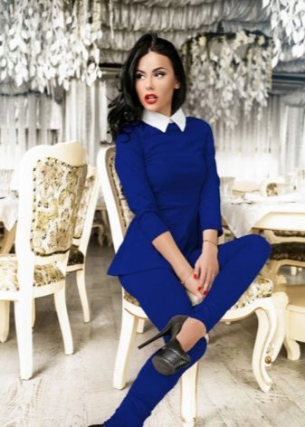 De fet, l’elecció del vestit no és tan limitada com podria semblar a primera vista. Aquesta pot ser una versió clàssica de color negre o blau fosc. O prefereixes models més brillants. Per tal que la imatge no s’assembli a un estil d’oficina, cal fer maquillatge de nit i un pentinat espectacular. Sota el vestit podeu portar no només una samarreta, la part superior també serà adequada.