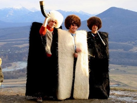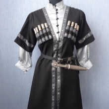 Els detalls tradicionals de la disfressa osetiana masculina són: