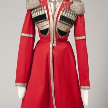 Per als models de abrics amb màniga estreta, es van utilitzar elements addicionals en forma de mànigues articulades fets del mateix material de vellut brodat amb motius i adorns daurats.