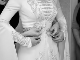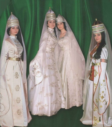 El vestit de núvia femení està confeccionat amb totes les tradicions possibles, posant l’èmfasi en l’honor i la castedat de la naturalesa femenina inherent a aquest poble.