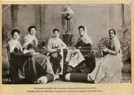 Antigament, a causa de la manca d’una àmplia selecció de materials per a la fabricació de roba nacional, les dones osetianes tenien teixits disponibles amb els colors que necessitaven. Cal destacar que les pintures també es van fer a mà.