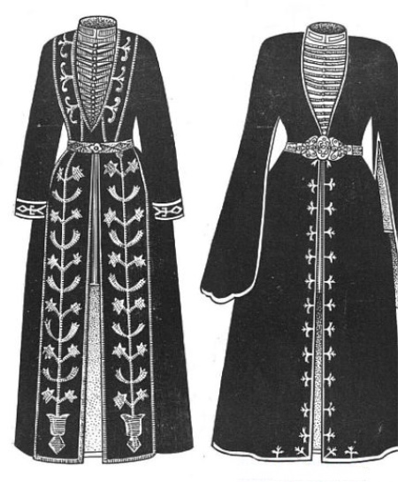 Però, a més dels models elegants, també hi havia moltes opcions quotidianes per als vestits de dona osetians. El collar cap amunt de peu, les mànigues estrenyent gradualment als canells i un aspecte restringit són les característiques principals del vestit quotidià de la dona osetiana.