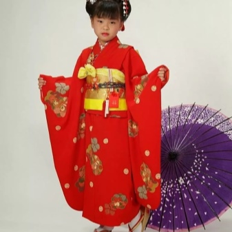 El vestit nacional japonès per a la noia difereix del quimono adult per la pretensió i l'elegància diverses vegades augmentat. Els colors dels vestits infantils són molt més pintorescos. Les estampes dels productes són específiques: cada dibuix està dotat d’un significat especial. Es creu que els patrons aporten bona sort a les nenes.