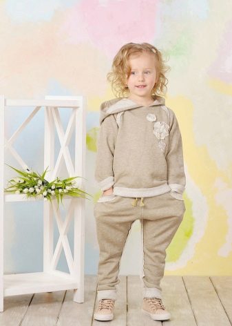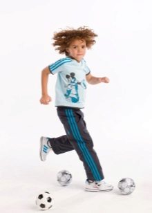 Per descomptat, no ignorau els xandalls de colors vius per passejar. A la roba es poden imprimir estampats en forma d’animals o formes geomètriques. El vestit pot tenir un aspecte més familiar amb ratlles als costats. El color sòlid del vestit i el color de les ratlles solen ser diferents. La textura massa “descarnada” d’un xandall infantil és poc probable que agradi al nen. Per tant, val la pena buscar opcions més neutres per a la roba esportiva, per trobar un compromís.