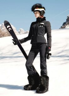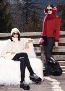 - Aquest xandall és perfecte per esquiar o practicar surf de neu. La capa superior impermeable protegirà de forma fiable de la humitat, un aïllament d'alta qualitat no es congelarà. Un disseny elegant us permetrà mantenir-vos de moda i atractiu fins i tot en el procés de moviment. El cantell de pell de la caputxa no només serveix com a aïllament addicional, sinó que també serveix de decoració de la imatge. El look es complementa amb unes mega botes lunokhod càlides i un còmode barret de mostassa, la tonalitat del qual fa ressò del color de l’acabat del xandall.