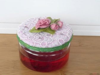 Després de deixar refredar lleugerament, aboqueu la massa resultant en un pot de vidre transparent amb un coll ample. Per obtenir el millor efecte decoratiu, podeu afegir bonics còdols, petxines, pètals de flors i altres decoracions al mateix lloc.