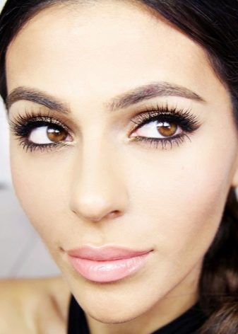 - L’eina principal per obtenir l’efecte desitjat és un joc d’ombres. S’aplica un to més clar a la parpella mòbil superior. La canela es destaca lleugerament fosca i destaca el cantó exterior de l’ull. Cal ombrejar-ho tot.