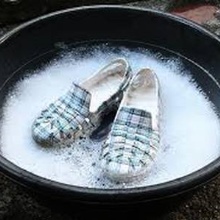 En primer lloc, cal destacar els blanquejadors o els detractors. Els més efectius són Vanish, Boss i Sarma. Tingueu en compte que per eliminar la brutícia de les sabatilles cal preparar-les un producte amb una concentració de solució de 2-2,5 vegades superior al normal. Així, si es recomana diluir la composició amb aigua com a 1: 5, haureu de preparar una solució 1: 2. És millor criar les sabates en una conca, on es posen les sabatilles de tal manera que la solució només cobreixi la seva sola. Cobriu el recipient amb film film o bossa de plàstic. Passats els 40-50 minuts, s’ha de tractar la superfície amb un raspall de dents.