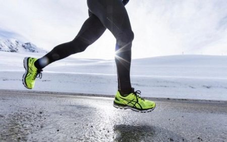 A la sola d’aquestes sabatilles de neu hi ha molta gel al taló i al dit del peu. I això vol dir que la sola té una depreciació màxima. Les sabatilles són lleugeres: només 343 grams. Tenen una malla especial a la part superior, que augmenta la transpirabilitat i fa que la part superior sigui molt suau. Però el taló, per contra, està reforçat per un marc especial, és ell qui no et permetrà fer mal al tendó d’Aquil·les. També hi ha una franja reflectant per córrer a les fosques o al crepuscle a les sabatilles. Dissenyat per a recorreguts a peu i mig.