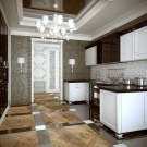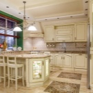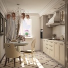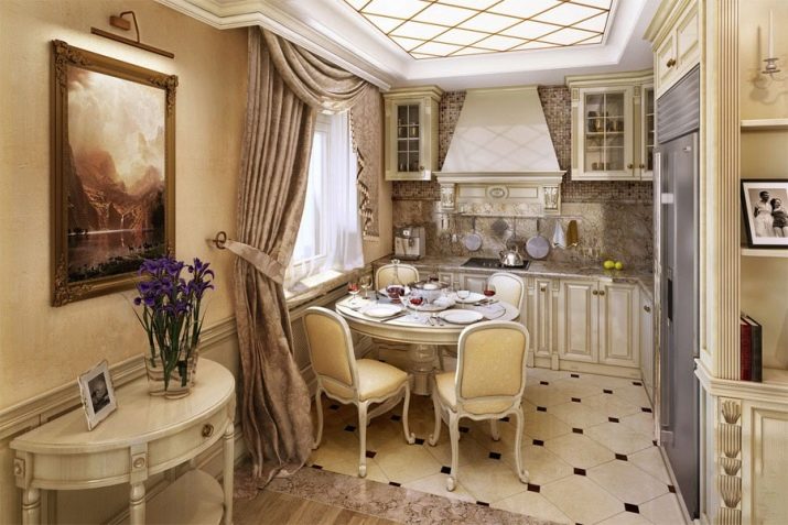 - Estil clàssic sembla molt aristocràtic, fins i tot en una petita cuina. La imitació de marbre, ceràmica i parets de colors clars donaran a l’interior simplicitat i sofisticació.