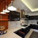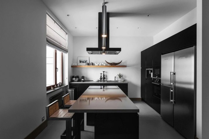 De vegades, les cuines estan decorades de colors foscos. Per crear un interior fosc luxós, abandoneu el negre pur - Ara la tendència és de tons compostos que semblen molt més elegants. Podeu prendre els tons foscos de Borgonya, blau, verd, morat o terracota. Les tonalitats d’oliva i els tons càlids de gris tenen un bon aspecte. La il·luminació jugarà un paper molt important a l’interior fosc de la cuina. - Ha de ser prou brillant per a un treball còmode a la cuina i posar l’èmfasi en llocs importants a l’interior.