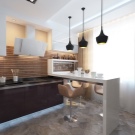 La cuina no pot prescindir d’una taula de menjador, però, en una cuina de mida petita de 3 a 4 metres, sovint se substitueix per un taulell de bar. Els bastidors moderns poden tenir un disseny inusual i un disseny completament únic, s’ajusten perfectament a l’interior. A més, el taulell de bar estalviarà significativament espai a la cuina.