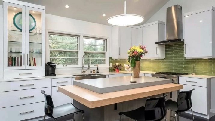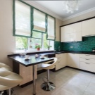 Si teniu una cuina quadrada, un petit conjunt hi cabrà perfectament amb un taulell de barres. Per a una cuina estreta a "Khrusxov", podeu considerar Auriculars en forma d’U. Si la cuina té un balcó, cal tenir en compte que aquest espai ha de romandre lliure, i per a una habitació amb una o dues finestres, la solució ideal seria taulell de bar al llarg de l'obertura.