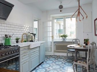 L’acabament del terra a la cuina també és important. S’ha de combinar amb l’interior principal i, el més important, ser pràctic. La majoria de les vegades per a opcions modernes d’interiorisme es trien terres laminats - Es tracta d’un revestiment barat i de gran qualitat, que té moltes opcions. Podeu triar fàcilment el color i la textura al vostre gust: des de la imitació de la fusta fins al revestiment multicolor amb estampats. De vegades en acabar l’ús del sòl de la cuina rajola ceràmica. Finalment, podeu considerar parquet - Els taulers naturals semblen luxosos al terra de la cuina.