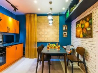 - El disseny en colors vius ampliarà visualment la sala. Aquesta tècnica s’utilitza sovint, tot i que hi ha opcions de disseny boniques per a una petita cuina de colors foscos.