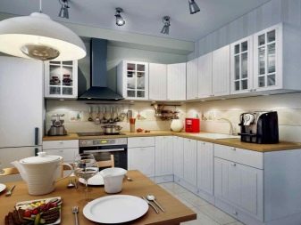 En una petita cuina hi haurà suficients dues fonts d’il·luminació: un candelabre lluminós a sobre de la taula i llums sobre la zona de treball de la cuina. Sovint s’utilitza i retroil·luminació LED. Si el candeler té 3-5 làmpades lluminoses dirigides en diferents direccions, la petita cuina resultarà acollidora i lluminosa. Tanmateix alguns fins i tot en una cuina petita prefereixen diverses làmpades bàsiques, que també poden tenir un aspecte prou bo.