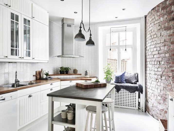 Sovint trien per la cuina pintar parets: una opció similar també pot semblar molt elegant. Podeu triar un color suau o amb textura, combinar diferents colors i tons. Aquest recobriment serà durador i pràctic, i una varietat de colors i tècniques crearan un acabat modern únic. A la cuina hi ha altres opcions de decoració de parets. Per exemple, és popular. rajola amb imitació de maó o maçoneria. Aquesta opció és adequada per a tothom que aprecia estètica inusual.