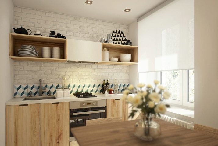 Abans d’iniciar una reparació a l’apartament, haureu de determinar immediatament el disseny. Si teniu una petita cuina al "Jrushxov" o a una casa de maó, la decoració ha de ser el més simple possible. Podeu decorar les parets de la cuina de diferents maneres.Sovint fan servir fons de pantalla. Fins i tot podeu colar-vos vosaltres mateixos. Tanmateix tingueu en compte que a la zona de cocció és millor no utilitzar-les: es brutaran ràpidament i quedaran inútils. S’han de retallar les parets al voltant de la cuina. teules ceràmiques, vidre, panells de plàstic o fusta lacada.