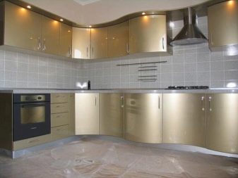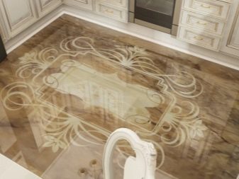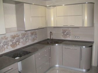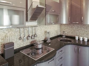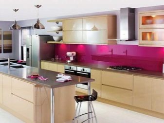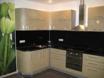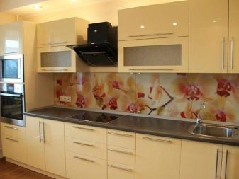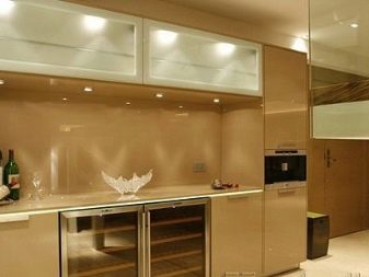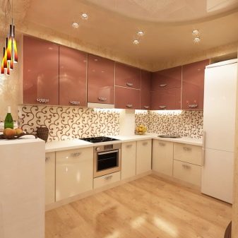 - Propietaris de cuina de xampany Els dissenyadors moderns recomanen donar preferència als patrons brillants en un davantal o terra. Utilitzant la impressió digital, a la superfície s’apliquen diversos patrons (incloent la creació d’un efecte mosaic).