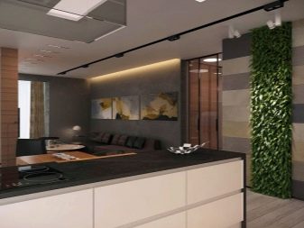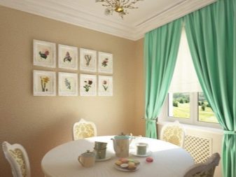 - Verd Aquesta combinació de colors és rellevant per a apartaments d’alta tecnologia. Els fons de pantalla beige es veuen excel·lents amb cortines i un candelabre de color moneda.