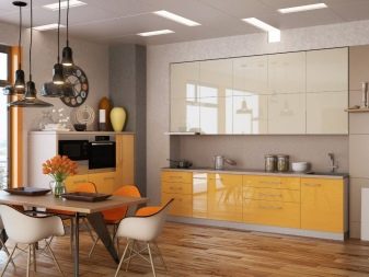 - Llimona Sombra suculenta perfectament combinada amb el color del xampany. Afegirà una cuina cremosa i brillant, amb notes d’estiu. Per a aquesta solució, són rellevants els mobles i els estris de color llimona.
