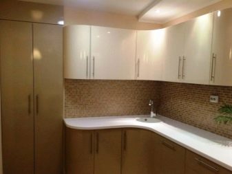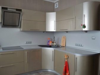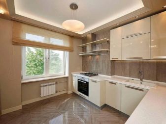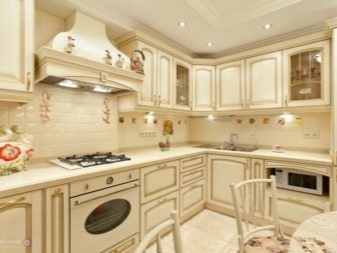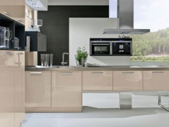 El clar clar del beix és adequat per a una cuina en miniatura amb finestres orientades al nord. Els colors clars aportaran llum, calor a l’habitació i ampliarà visualment l’espai. El to de xampany és rellevant com a to principal i addicional. Amb ell, es pot crear un interior a l'estil de tecnologia, modern, provençal i country. Tingueu en compte que els dissenyadors moderns de cuines clàssiques solen triar revestiments mat, i la textura brillant és rellevant per a un estil d'alta tecnologia.