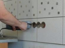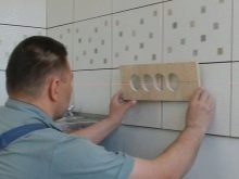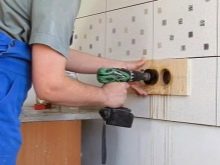 Quan el disseny de les fonts d’energia està a punt, cal marcar directament la superfície del davantal. Després d’això, es preparen els forats. La forma exacta d’això depèn de quin material està fabricat el davantal. Molt sovint és suficient simplement foradar nínxols. En aquesta fase, heu d'assegurar-vos que el patró no es pertorba.. Si el davantal és de vidre, no podreu dur a terme els treballs vosaltres mateixos. S’han de fer mesures, que després es transfereixen al fabricant que prepara el davantal. Aquesta és l’única opció per fer forats per als endolls d’un drap de vidre.