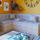 La creació de llits addicionals és un problema bastant comú per als residents d’habitatges petits, que es troben no només durant l’arribada de convidats, sinó també a l’hora de col·locar els seus familiars a la nit. En aquest cas una excel·lent solució seria comprar un sofà de cuina equipat amb un llit de mida completa. Per exemple, aquesta opció suposarà una autèntica salvació en famílies amb fills nascuts, garantint un son normal per al pare treballador de la família.