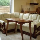 La pell genuïna té un aspecte molt ric i és un signe de riquesa i bon gust dels propietaris. Tot i això, asseure’s en un sofà de pell durant molt de temps, sobretot en temps de calor, és molt incòmode, a més, el cost de plegar models de cuir és molt elevat.