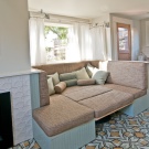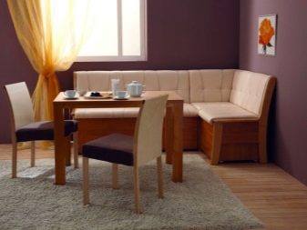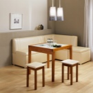 Aquests models són una forma lleugera d'un sofà interior tradicional i tenen una gran demanda entre els propietaris de cuines grans i mitjanes. A diferència d’un sofà clàssic, aquests models sovint no tenen ni parets laterals ni reposabraços. o bé tenir-los només per un costat. D’aquesta manera estalvieu molt l’espai a la cuina i us podeu asseure al sofà des de qualsevol direcció. Tot i això, les còpies directes són menys convenients quan es col·loca una gran empresa a la taula, que requereix més cadires i tamborets per asseure’ls.