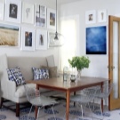 Un sofà de cuina amb una llitera sovint no només complementa la composició general, sinó que també actua com un element independent de l’interior. Així doncs, a les cuines amb predomini de textures naturals, els models de disseny lacònic tenen un aspecte molt harmoniós tons de cafè, lli, antracita, crema i xocolata, així com ivori. Elegant vermell, gerd, blau, safir i llimona els sofàs d’esquena baixa, així com un transformador modular sense parets laterals s’adaptaran perfectament a la majoria d’interiors moderns, com l’alta tecnologia, el modernisme i el minimalisme.
