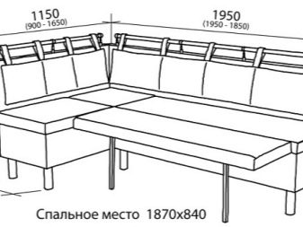 Abans de continuar amb la selecció d’un sofà de cuina amb un llit, cal fer mesures de la cuina, segons la seva base per determinar Màximes dimensions permissibles de mobles. Heu d'assegurar-vos que la llera establerta s'ajusta a l'espai previst per a ell. També heu de determinar amb antelació on podeu treure la taula de menjador quan feu servir el sofà de nit.