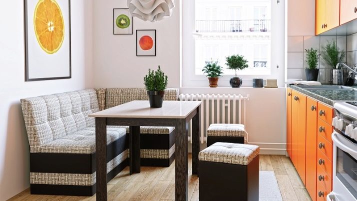 Aquests models són ideals per a cuines minúscules, sovint són adquirits pels propietaris del "Jrushxov" i altres habitatges de mida petita. El disseny dels sofàs no preveu la presència de calaixos sota el seient i, quan es plega, els detalls estructurals no interfereixen amb les potes d’una persona asseguda. Exteriorment, aquest model és un sofà lleuger i compacte que no carrega l’espaiperò alhora és altament funcional i convenient.
