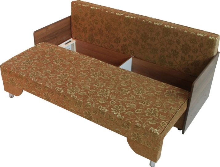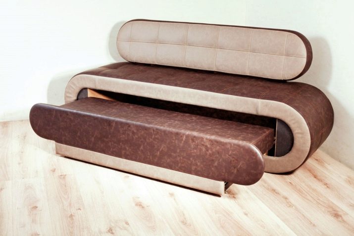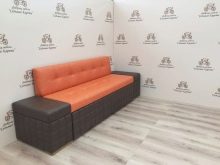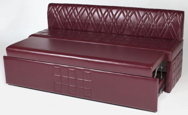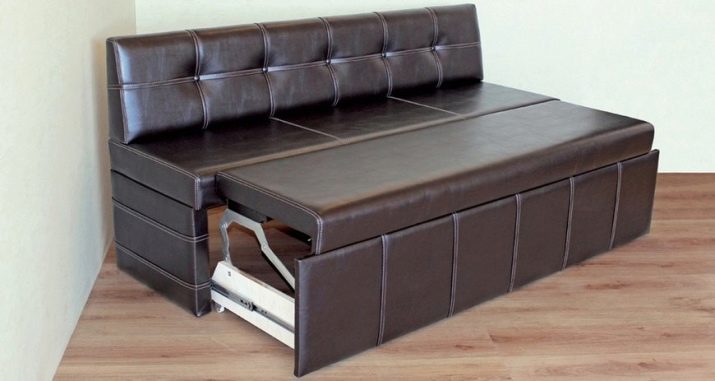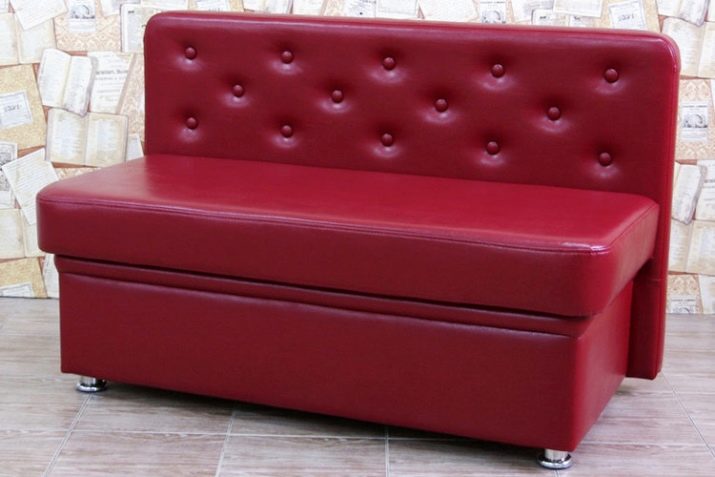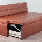 La presència d'una caixa d'emmagatzematge és un gran avantatge de qualsevol sofà, especialment de cuina. Els models "llibre" i "eurobook" poden tenir una funció d'aquest tipus. Ampli i còmode, dóna un lloc addicional per guardar estris de cuina, que no tenien prou espai a l'auricular. Es recomana un model similar per a una habitació petita.