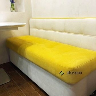 Com que el mobiliari estarà a la cuina, la tapisseria ha d’estar feta amb els materials més pràctics i sense marques que siguin fàcils de cuidar. Aquest element és especialment important per a famílies amb nens i animals. Si el sofà és car, es recomana adquirir una funda que es pugui treure fàcilment i rentar en una rentadora. Els materials següents són més populars.