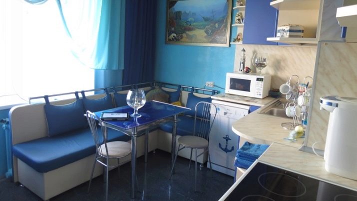El blau s’associa amb el cel i el mar. Si voleu crear un racó d'estil nàutic a la cuina, aleshores Utilitzeu el blau en combinació amb el blanc o el gris clar. Afegiu-hi cadires amb esquena metàl·lica i una taula amb una superfície de vidre blau, i us podeu imaginar a la coberta d’un vaixell de creuer.