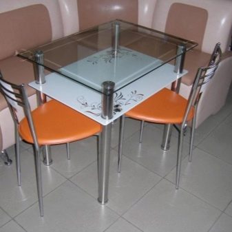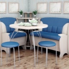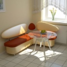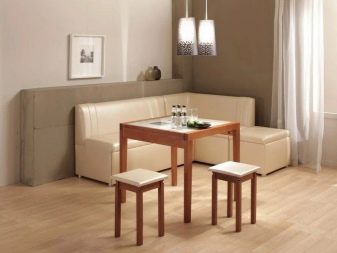 Si a la cuina hi ha molt poc espai, haureu de rebutjar un conjunt amb un sofà, substituint-lo per un conjunt amb un banc de cuina. Les cadires aquí ocuparan massa espai i, per tant, un banc amb taula serà suficient per allotjar i estalviar espai. Com a últim recurs, podeu incloure un parell de femtes entapissades al kit.