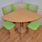 Una taula a petites cantonades difereix de forma. En la realització tradicional, pot ser rectangular amb arestes afilades o arrodonides. A més d'aquests models, les marques inclouen taules ovalades i triangulars en conjunts. A més, a la venda podeu trobar mobles de mida petita amb taula rodona. El compacte en diferents conjunts és diferent, com també ho és el material de fabricació.