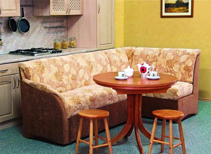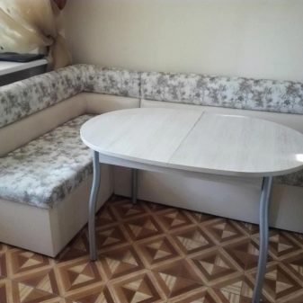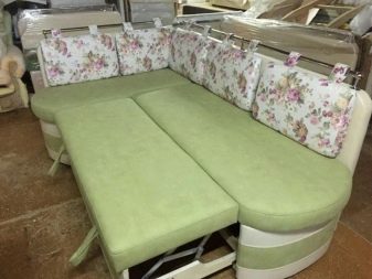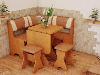 Les cantonades compactes amb un llit es diferencien de les altres varietats, ja que proporcionen un sistema de transformació que permet convertir un banc de cuina, similar al sofà, en un llit estret. El mecanisme de transformació de la banqueta pot ser diferent, així com el tipus de bancs. Aquests jocs són cars, semblen respectables, però els llocs de la cuina són més que altres dels anàlegs. L’inconvenient dels models transformables és la necessitat de moure la taula.
