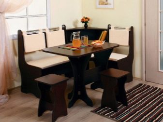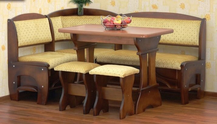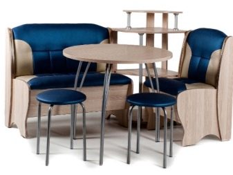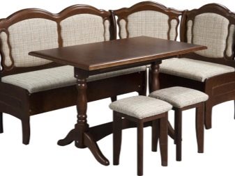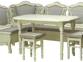 Aquests mobles solen estar equipats amb una taula, un sofà cantoner, un parell de tamboret i un otomà. Per a diferents fabricants, les dimensions del producte poden variar.