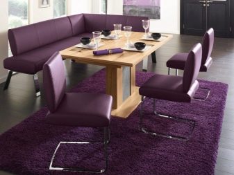 La tapisseria dels sofàs pot ser diferent. Els propietaris que prefereixin un ambient acollidor, opten per productes suaus. Aquesta és una solució ideal tant per a menjar com per a relaxar-se.