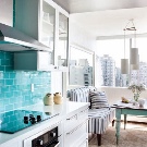 Impressió de façanes, acabats de colors i mobles originals donen a la cuina una personalitat lluminosa. Fixeu-vos en els tons seleccionats amb cura.