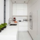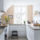 Penseu en els avantatges de triar el blanc per a una cuina petita.