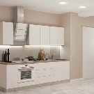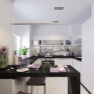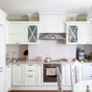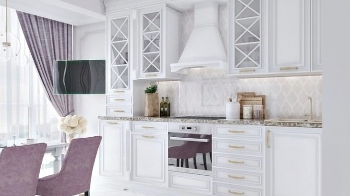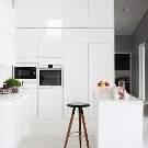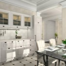 El blancor es combina amb qualsevol tonalitat. Els coneixedors de contrastos espectaculars poden triar el negre com a acompanyant. S'obté un espai estricte en blanc gris gamma. Afegiu una comoditat càlida tons de beix i marró. L'interior és molt suau i inclou una cuina blanca de neu tons rosats i morats.