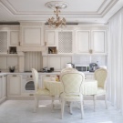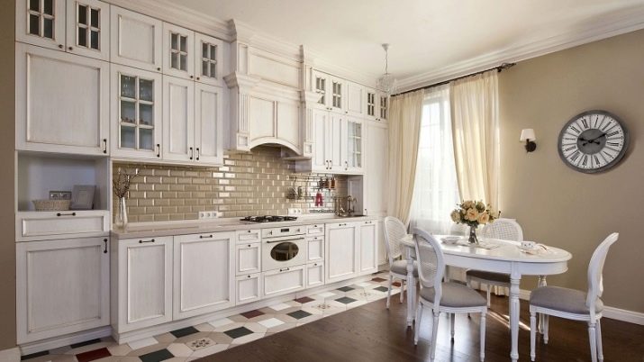 Els clàssics i els neoclàssics suggereixen mobles elegants fets en estil vintage. Les talles, les nanses gracioses i les cornises fan que el conjunt de les neus sigui encara més solemne. Si voleu crear un interior estricte i elegant, podeu combinar llet amb tons de caramel i xocolata. Pistache, tons blaus profunds, semblen nobles en un entorn així. Si voleu afegir funcions modernes, podeu combinar blancor amb lavanda, turquesa i blau.