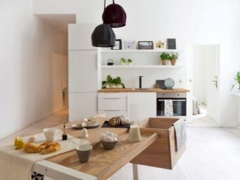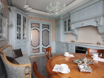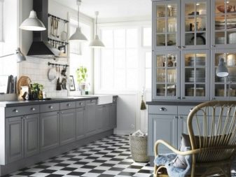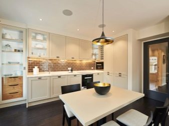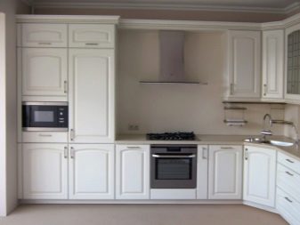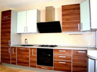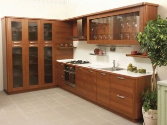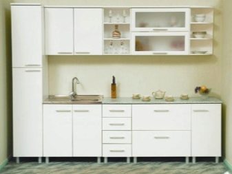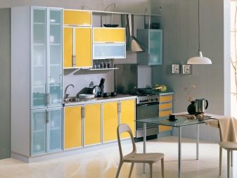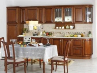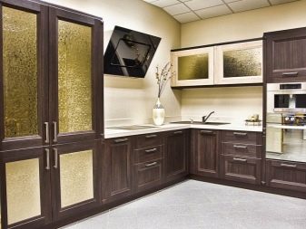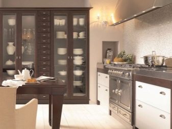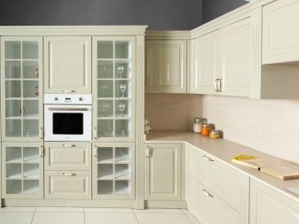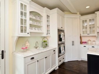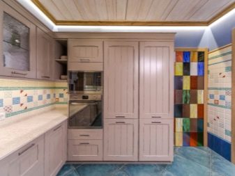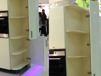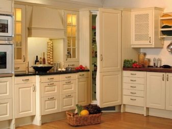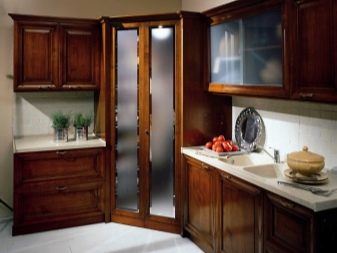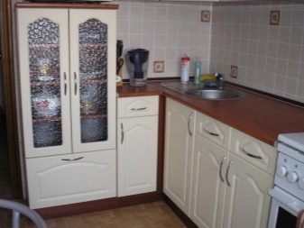 Si la cuina és petita, es recomana posar un armari en un racó lliure. Així, podreu estalviar espai útil de l’habitació, evitant l’efecte d’una habitació desordenada i incòmoda.