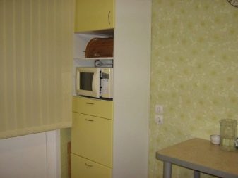 - Al nínxol obert, podeu posar un forn de microones.A les botigues de mobles hi ha models de estoigs dissenyats per a electrodomèstics de cuina.
