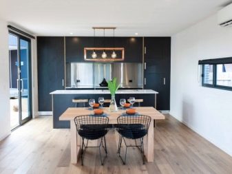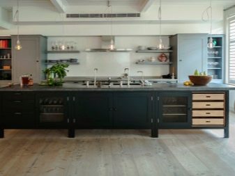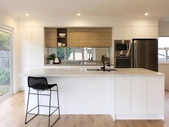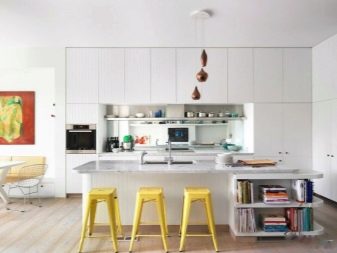 En alguns casos, l'interior de la cuina es complementa amb un bloc sencer format per diverses fundes altes. En aplicació, aquest disseny és funcional i pràctic.