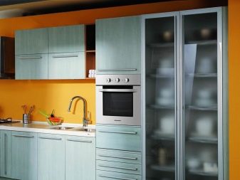 - Si voleu transformar l’interior de la cuina, per afegir-hi accents brillants, podeu triar armaris originals, estoigs, les façanes dels quals es complementen amb vidres de diferents colors.