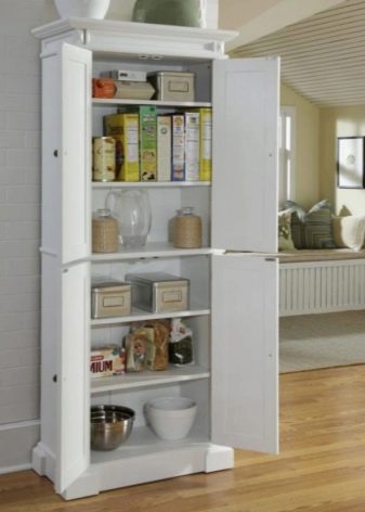 Molt popular models de columnes amb prestatges obertssituat a la part superior o al centre de l'estructura. En aquests compartiments, podeu col·locar diversos objectes de decoració, decoracions adequades per a la cuina. A armaris d’aquest tipus, la part inferior roman tancada: allà podeu emmagatzemar coses que no us semblen o que no us calen. També podeu trobar modificacions d’altaveus completament obertes a la venda, però probablement s’haurien d’anomenar prestatgeries.